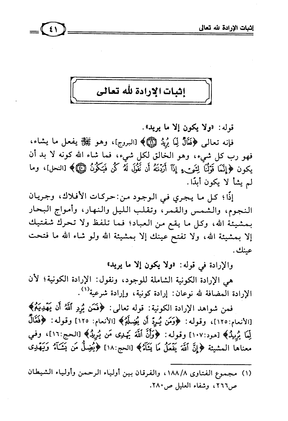 (¬1) مجموع الفتاوى 8/ 188، والفرقان بين أولياء الرحمن وأولياء الشيطان 11/ 266، وشفاء العليل ص 280.