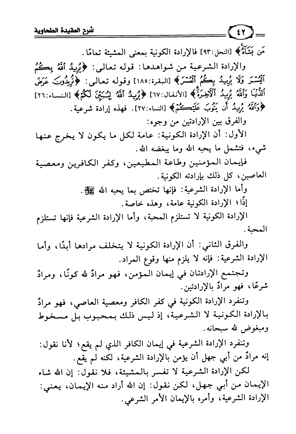 لكن الإرادة الشرعية لا تفسر بالمشيئة، فلا نقول: إن الله شاء الإيمان من أبي جهل، لكن نقول: إن الله أراد منه الإيمان، يعني: الإرادة الشرعية، وأمره بالإيمان الأمر الشرعي،