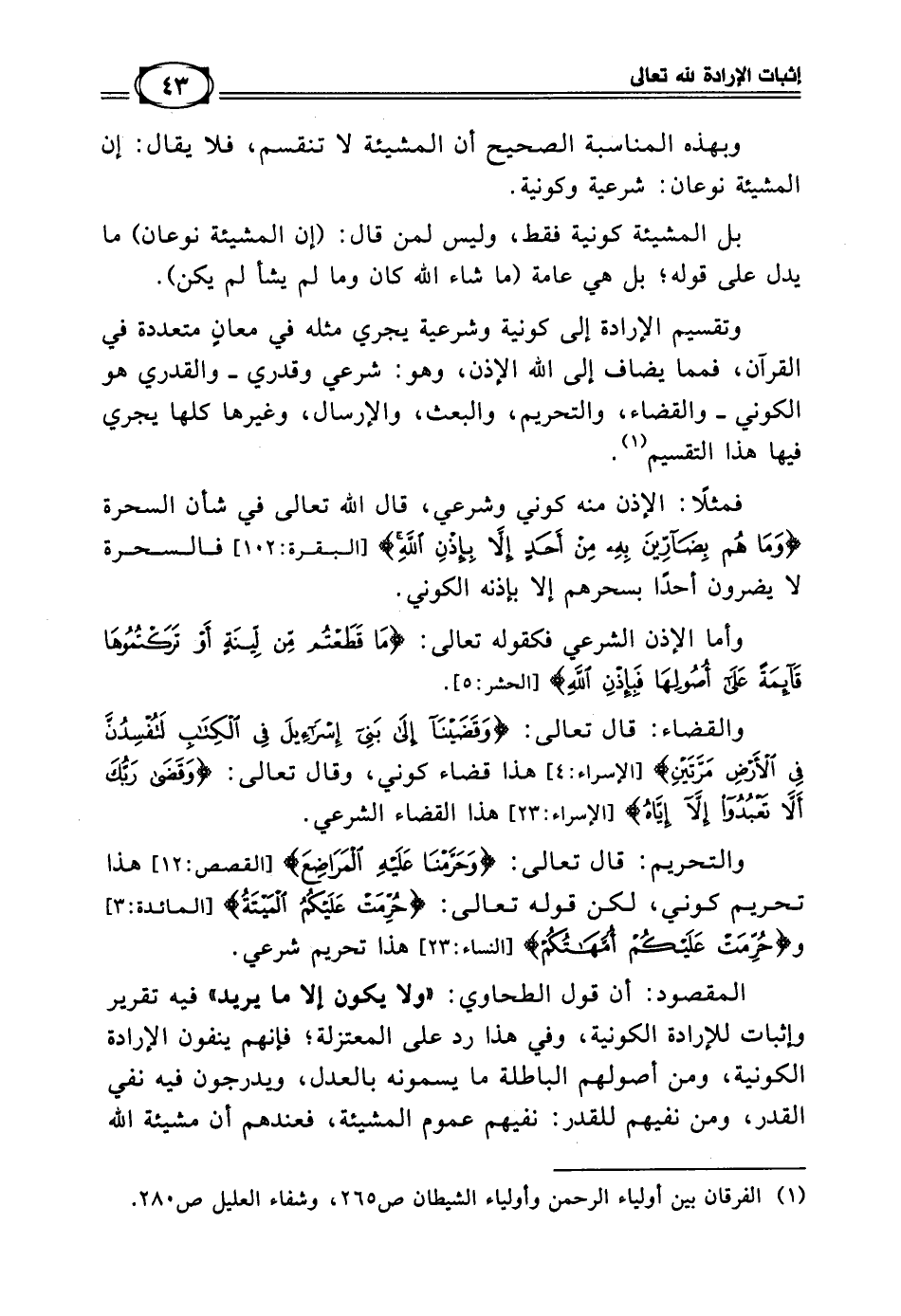 (¬1) الفرقان بين أولياء الرحمن وأولياء الشيطان 11/ 265، وشفاء العليل ص 280.