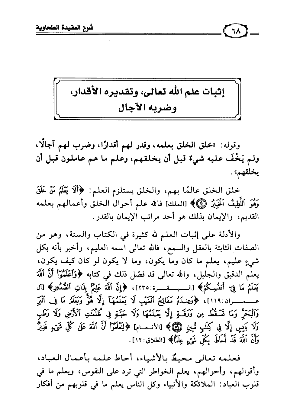 وقوله: (خلق الخلق بعلمه، وقدر لهم أقداراً، وضرب لهم آجالاً، ولم يخف عليه شيءٍ قبل أن يخلقهم، وعلم ما هم عاملون قبل أن يخلقهم)