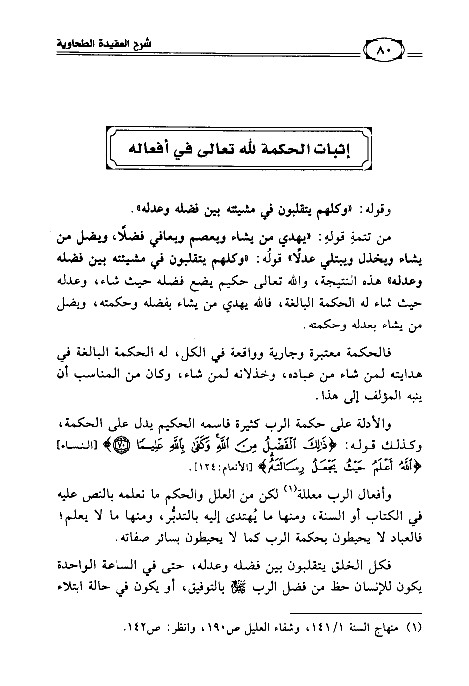 فالحكمة معتبرة وجارية وواقعة في الكل له الحكمة البالغة في هدايته لمن شاء من عباده، وخذلانه لمن شاء، وكان من المناسب أن ينبه المؤلف إلى هذا.