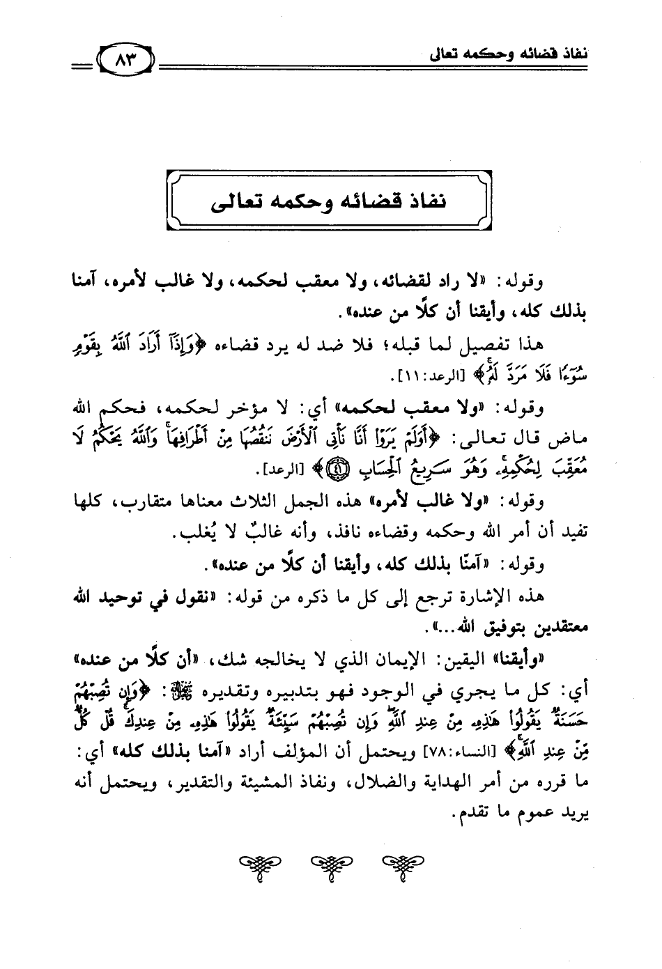 وقوله: (لا راد لقضائه، ولا معقب لحكمه، ولا غالب لأمره).