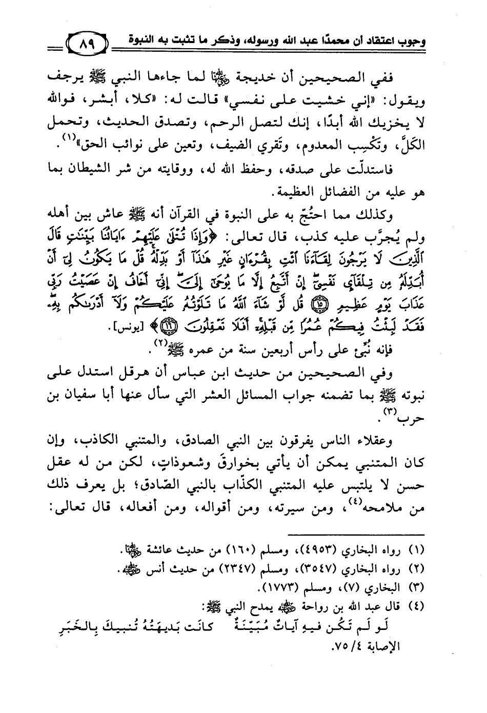 وفي الصحيحين من حديث ابن عباس أن هرقل استدل على نبوته - صلى الله عليه وسلم - بما تضمنه جواب المسائل العشر التي سأل عنها أبا سفيان بن حرب. (¬3)
