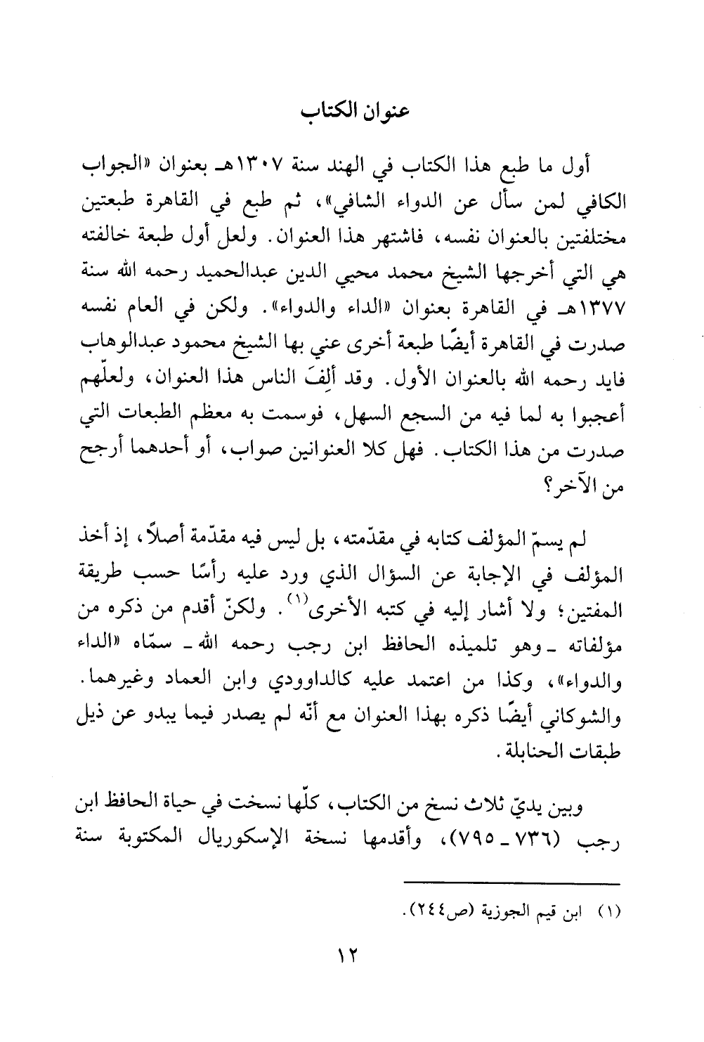 كتاب الداء والدواء = الجواب الكافي ط عالم الفوائد (اسم الجزء: المقدمة)