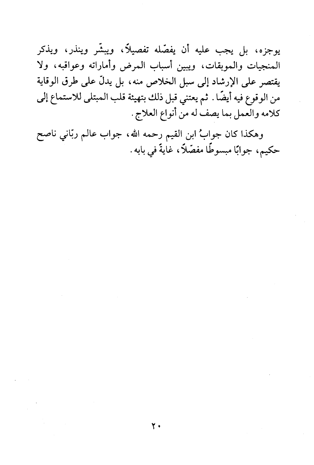وهكذا كان جوابُ ابن القيم رحمه الله، جواب عالم ربّاني ناصح حكيم، جوابًا مبسوطًا مفصّلا، غايةً في بابه.