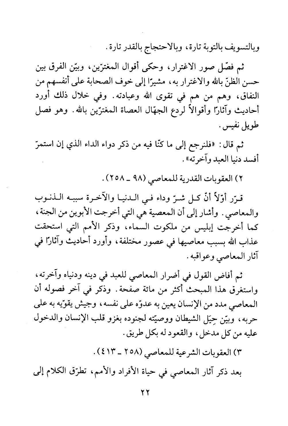 2) العقوبات القدرية للمعاصي (98 - 258).