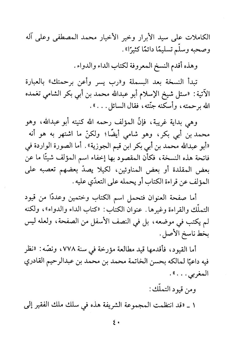 وهذه أقدم النسخ المعروفة لكتاب الداء والدواء.