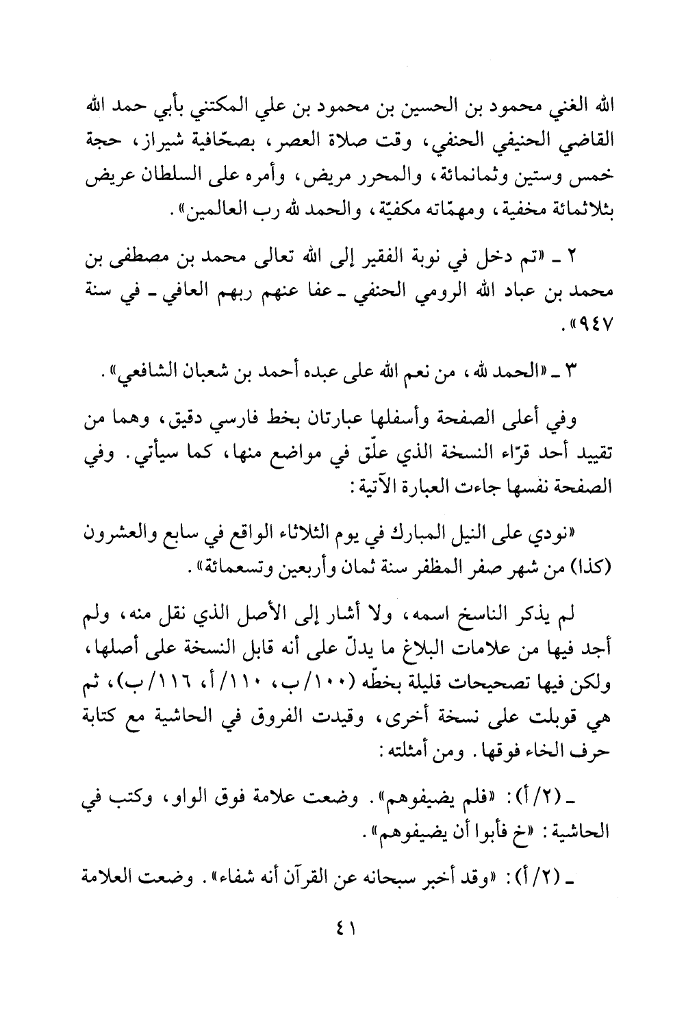 2 - "تم دخل في نوبة الفقير إلى الله تعالى محمَّد بن مصطفى بن محمَّد بن عباد الله الرومي الحنفي -عفا عنهم ربهم العافي- في سنة 947"