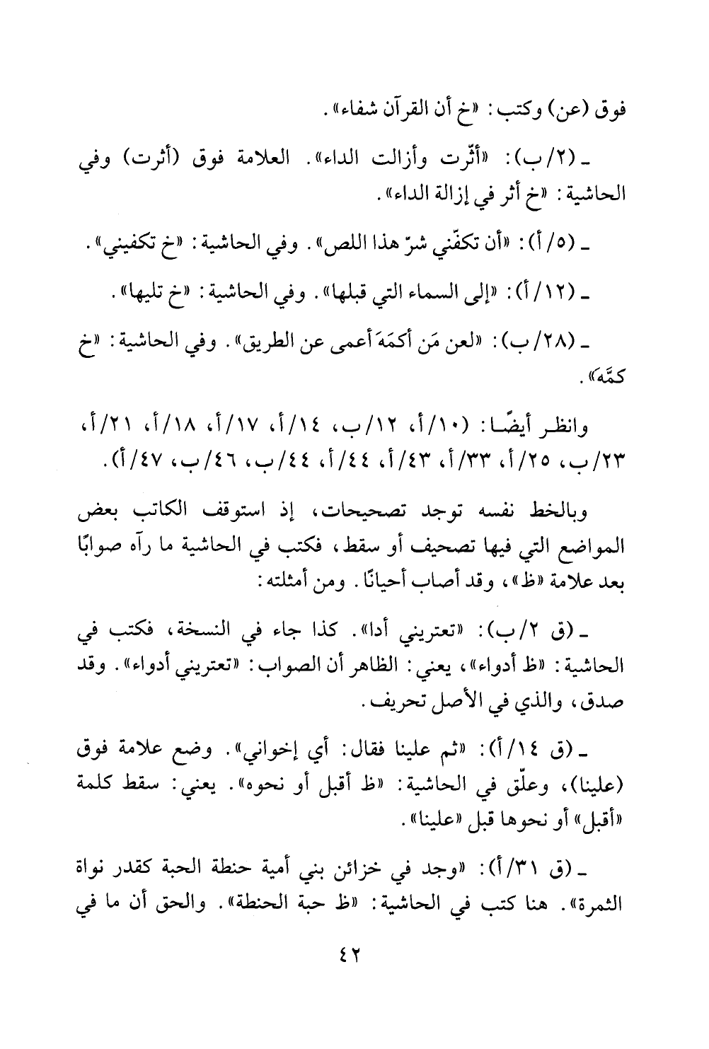 وانظر أيضًا: (10/ أ، 12/ ب، 14/ أ، 17/ أ، 18/ أ، 21/ أ، 23/ ب، 25/ أ، 33/ أ، 43/ أ، 44/ أ، 44/ ب، 46/ ب، 47/ أ).