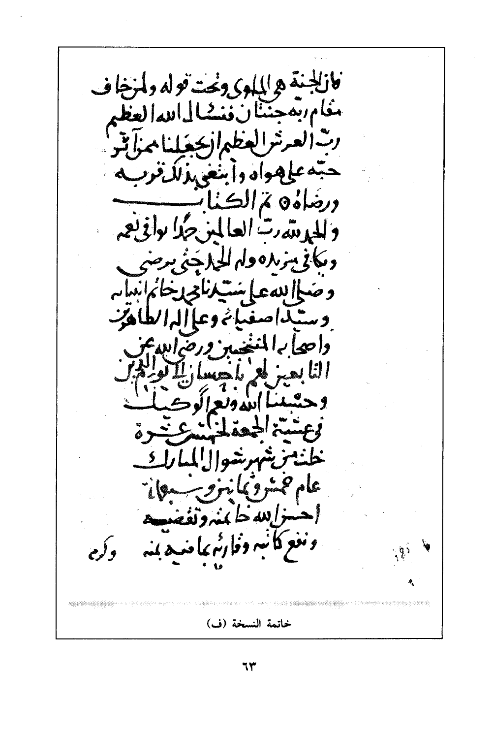 خاتمة النسخة (ف)