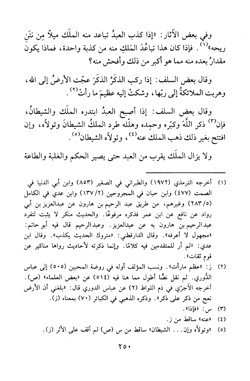 وفي بعض الآثار: "إذا كذب العبدُ تباعد منه الملَك ميلًا مِن نتَنِ ريحه" (¬1). فإذا كان هذا تباعُدَ المَلكِ منه من كذبة واحدة، فماذا يكون مقدارُ بعده منه مما هو أكبر من ذلك وأفحش منه؟