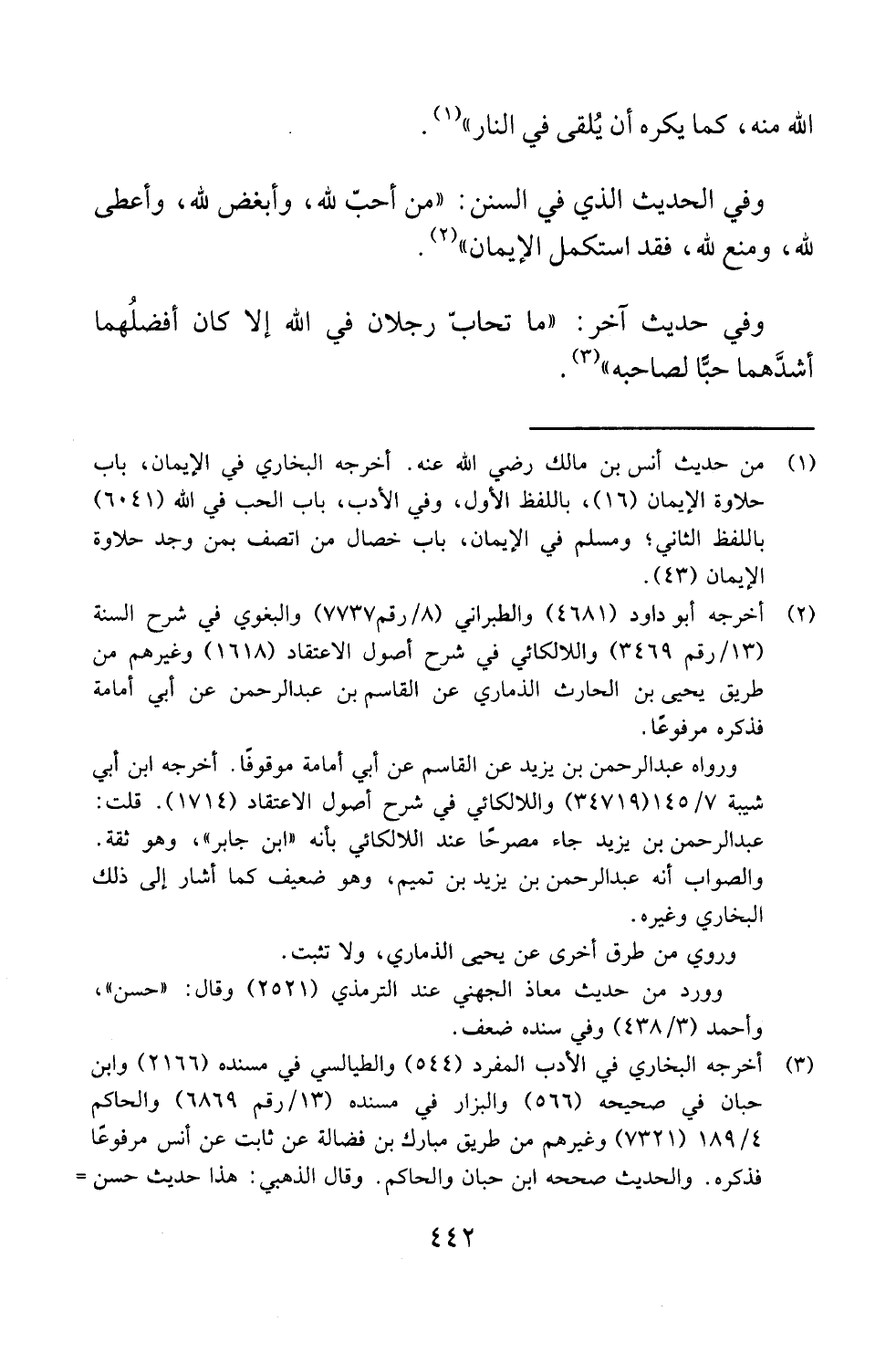 وفي الحديث الذي في السنن: "من أحبّ لله، وأبغض لله، وأعطى لله، ومنع لله، فقد استكمل الإيمان" (¬2).