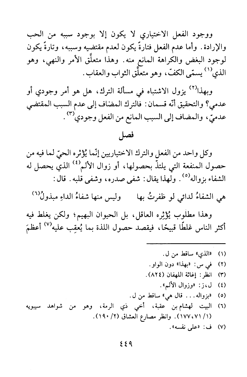وكل واحد من الفعل والترك الاختياريين إنّما يُؤثره الحيّ لما فيه من حصول المنفعة التي يلتذّ بحصولها، أو زوال الألم (¬4) الذي يحصل له الشفاء بزواله (¬5). ولهذا يقال: شفى صدره، وشفى قلبه. قال: