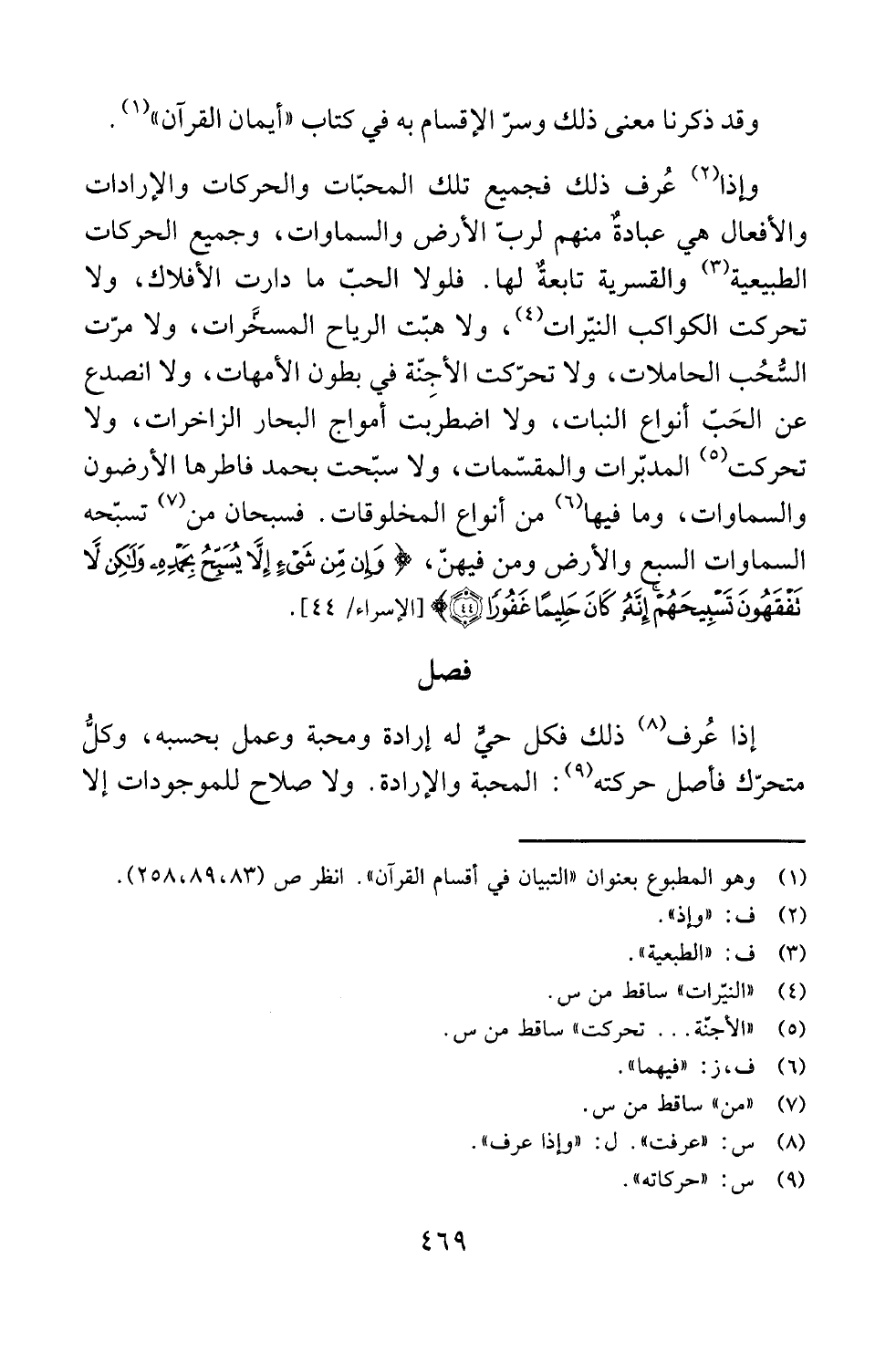 (¬1) وهو المطبوع بعنوان "التبيان في أقسام القرآن"، انظر ص (83، 89. 258).