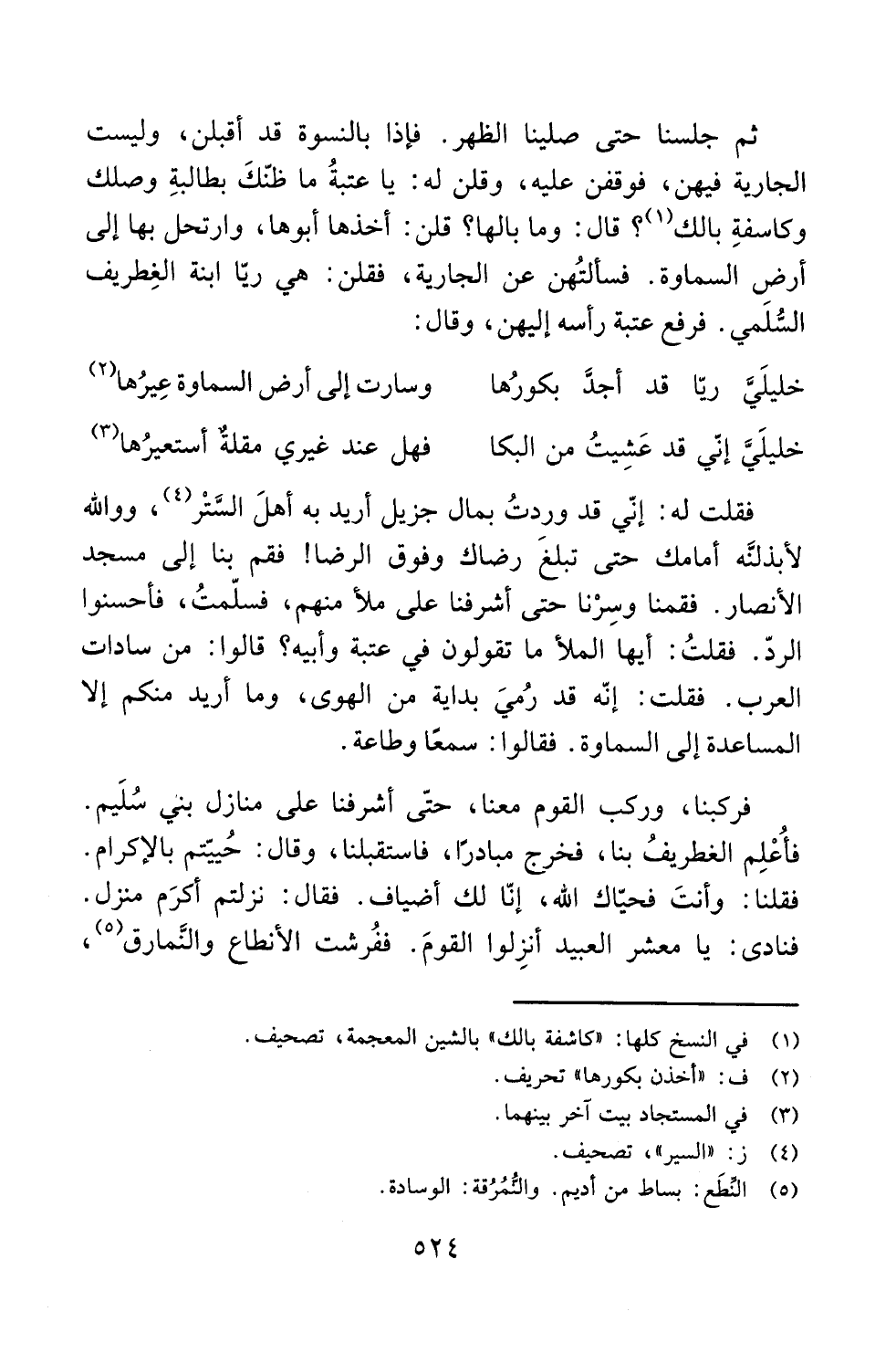 أرض السماوة. فسألتُهن عن الجارية، فقلن: هي ريّا ابنة الغِطريف السُّلَمي. فرفع عتبة رأسه إليهن، وقال: