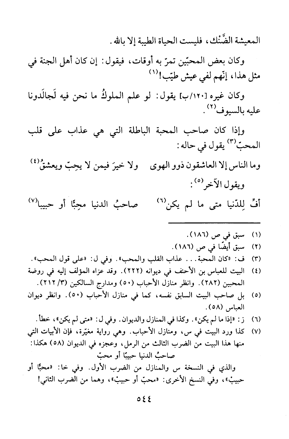(¬4) البيت للعباس بن الأحنف في ديوانه (222). وقد عزاه المؤلف إليه في روضة المحبين (282). وانظر منازل الأحباب (50) ومدارج السالكين (3/ 212).