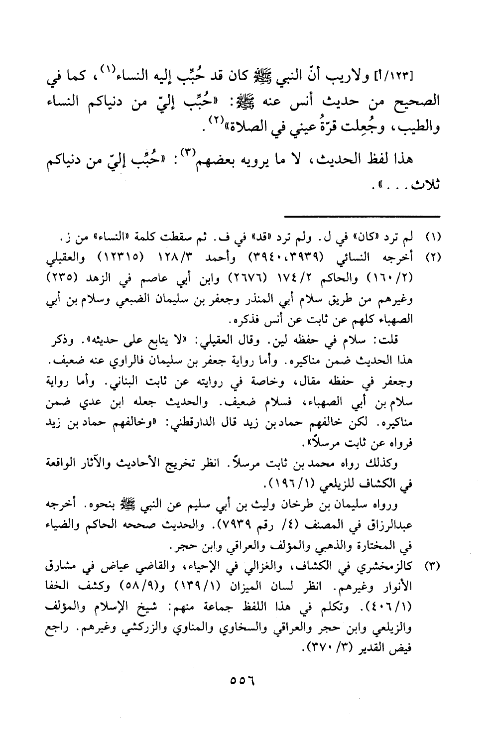 هذا لفظ الحديث، لا ما يرويه بعضهم (¬3):"حُبِّب إليّ من دنياكم ثلاث ... ".