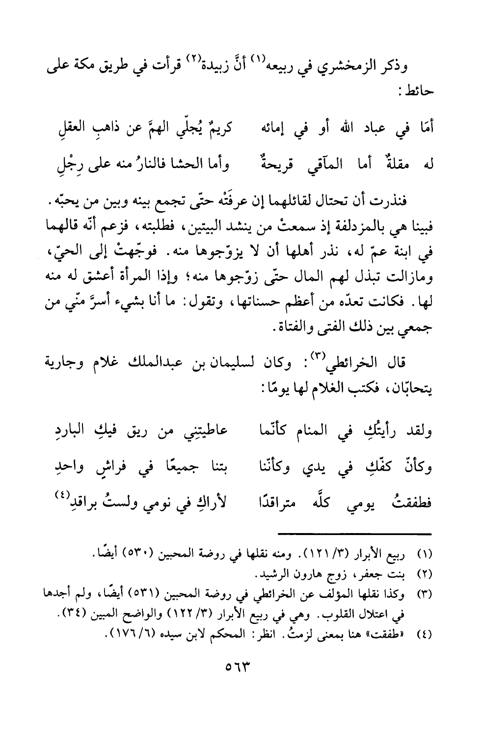 (¬1) ربيع الأبرار (3/ 121). ومنه نقلها في روضة المحبين (530) أيضًا.