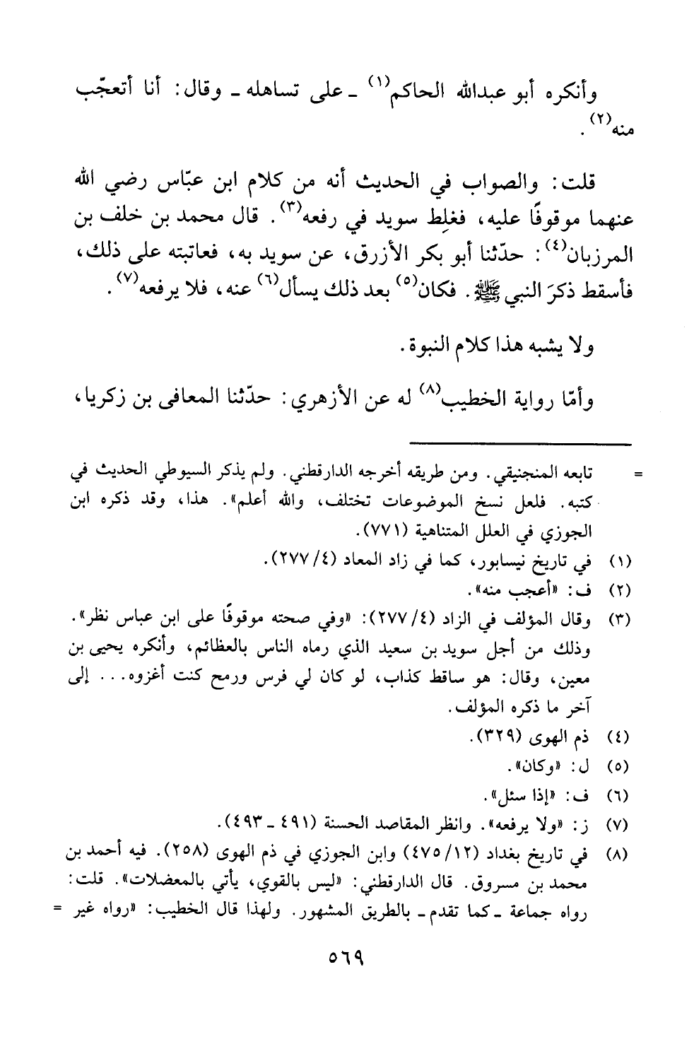 (¬3) وقال المؤلف في الزاد (4/ 277): "وفي صحته موقوفًا على ابن عباس نظر".