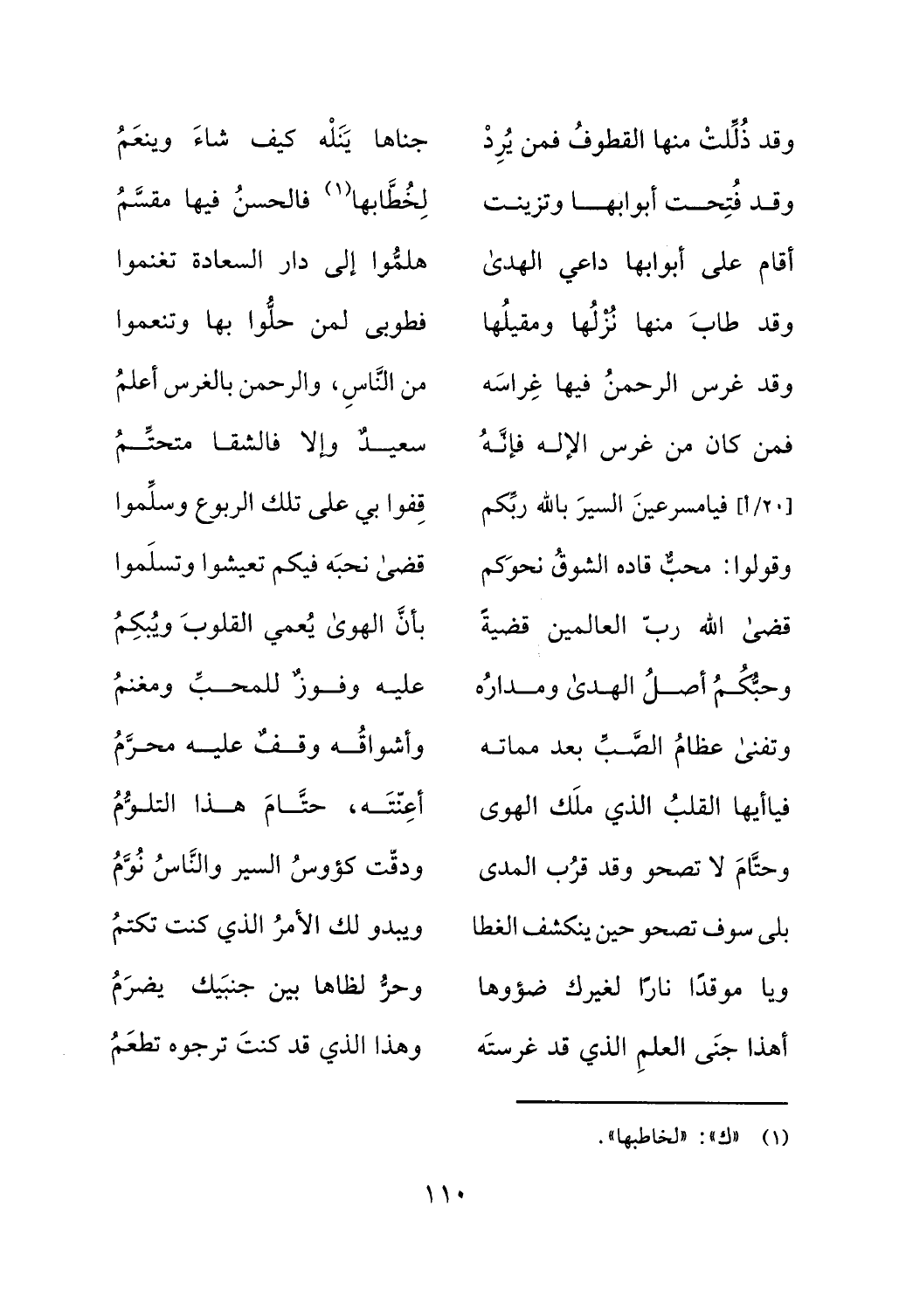 (1) "ك":"لخاطبها".