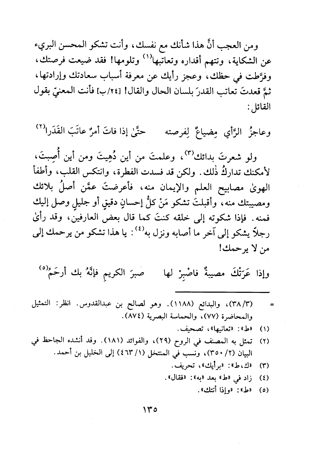 (38/ 3)، والبدائع (1188). وهو لصالح بن عبدالقدوس. انظر: التمثيل