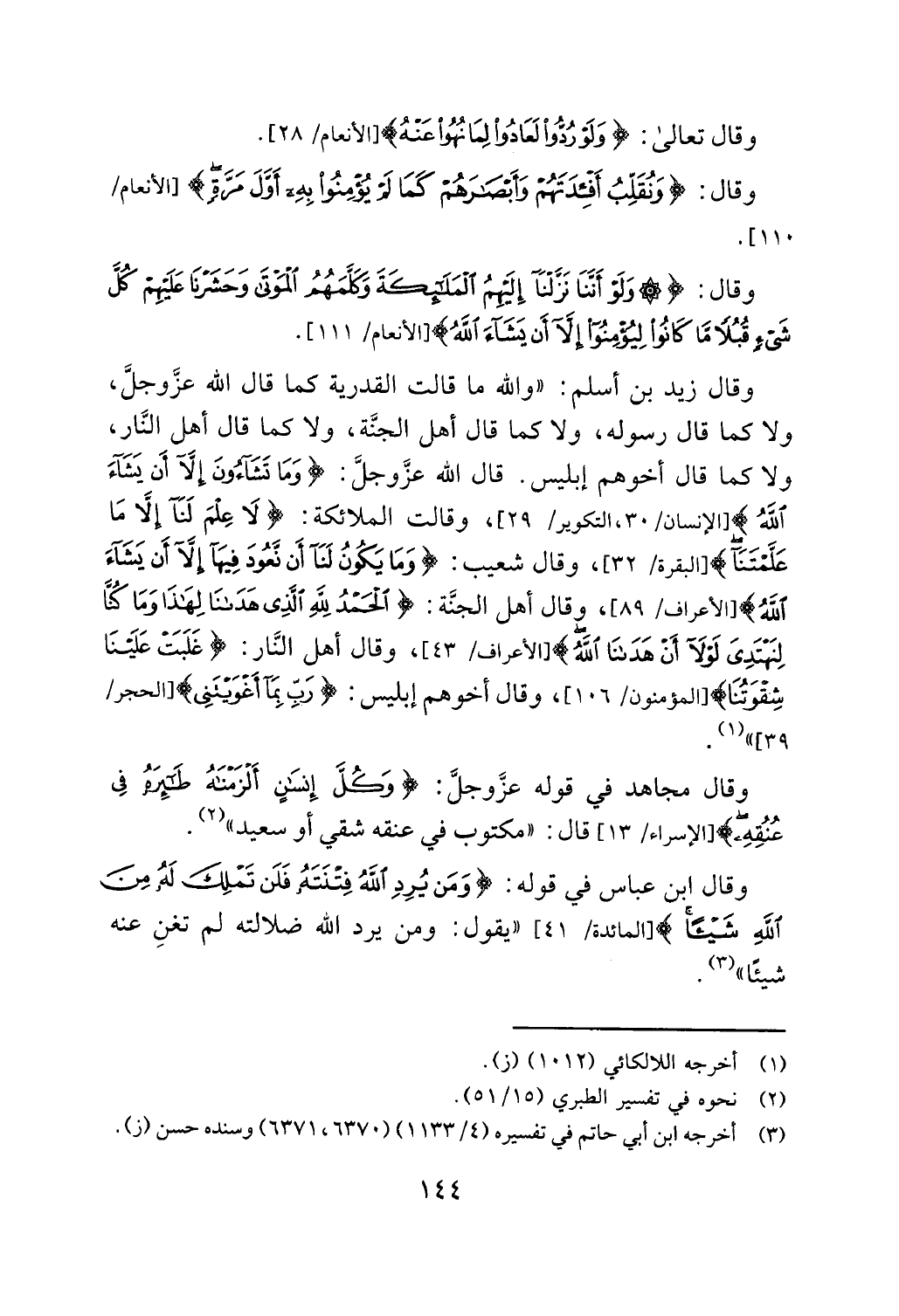 وقال زيد بن سلم: "والله ما قالت القدرية كما قال الله عزوجل،