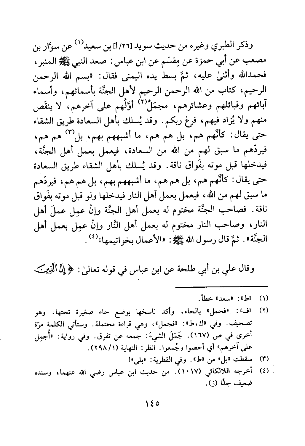 (4) أخرجه اللالكائي (1017). من حديث ابن عباس رضي الله عنهما، وسنده