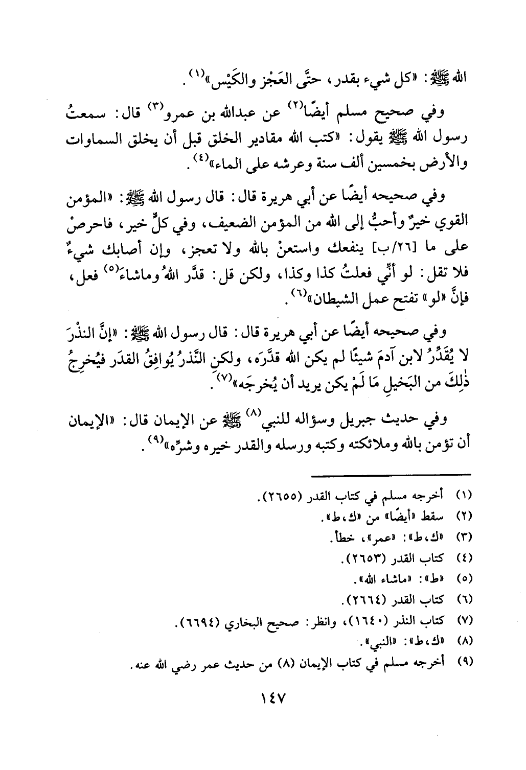 أن تؤمن بادله وملائكته وكتبه ورسله والقدر خيره وشره " (9).