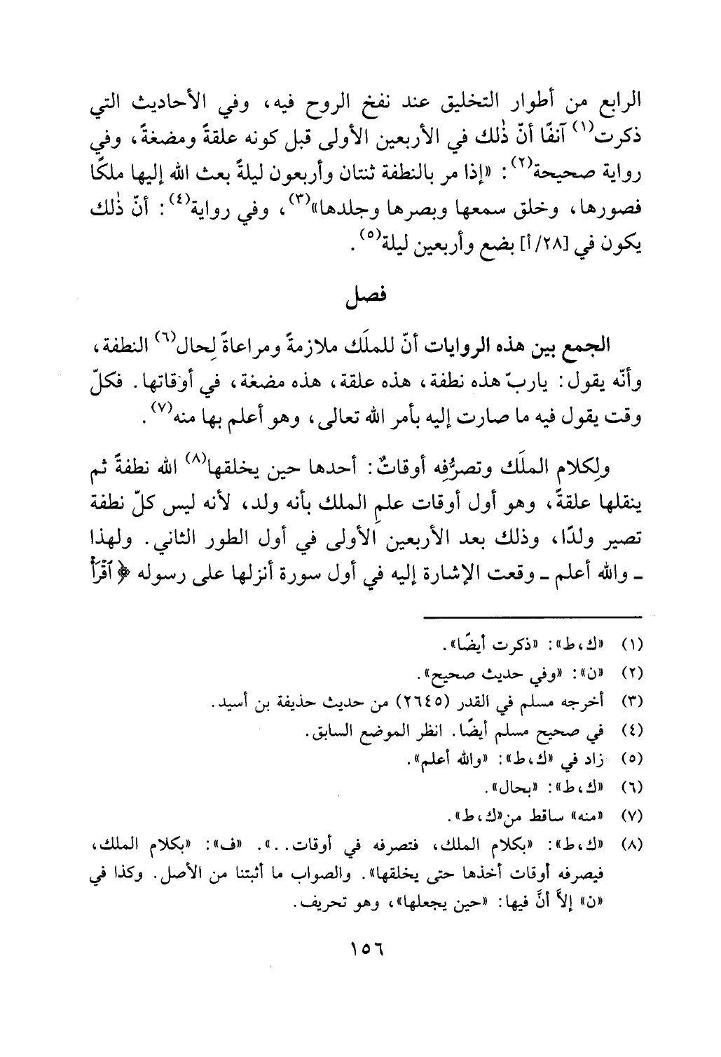 ولكلام الملك وتصزفه أوقات: أحدها حين يخلقها (8) الله نطفة ثم