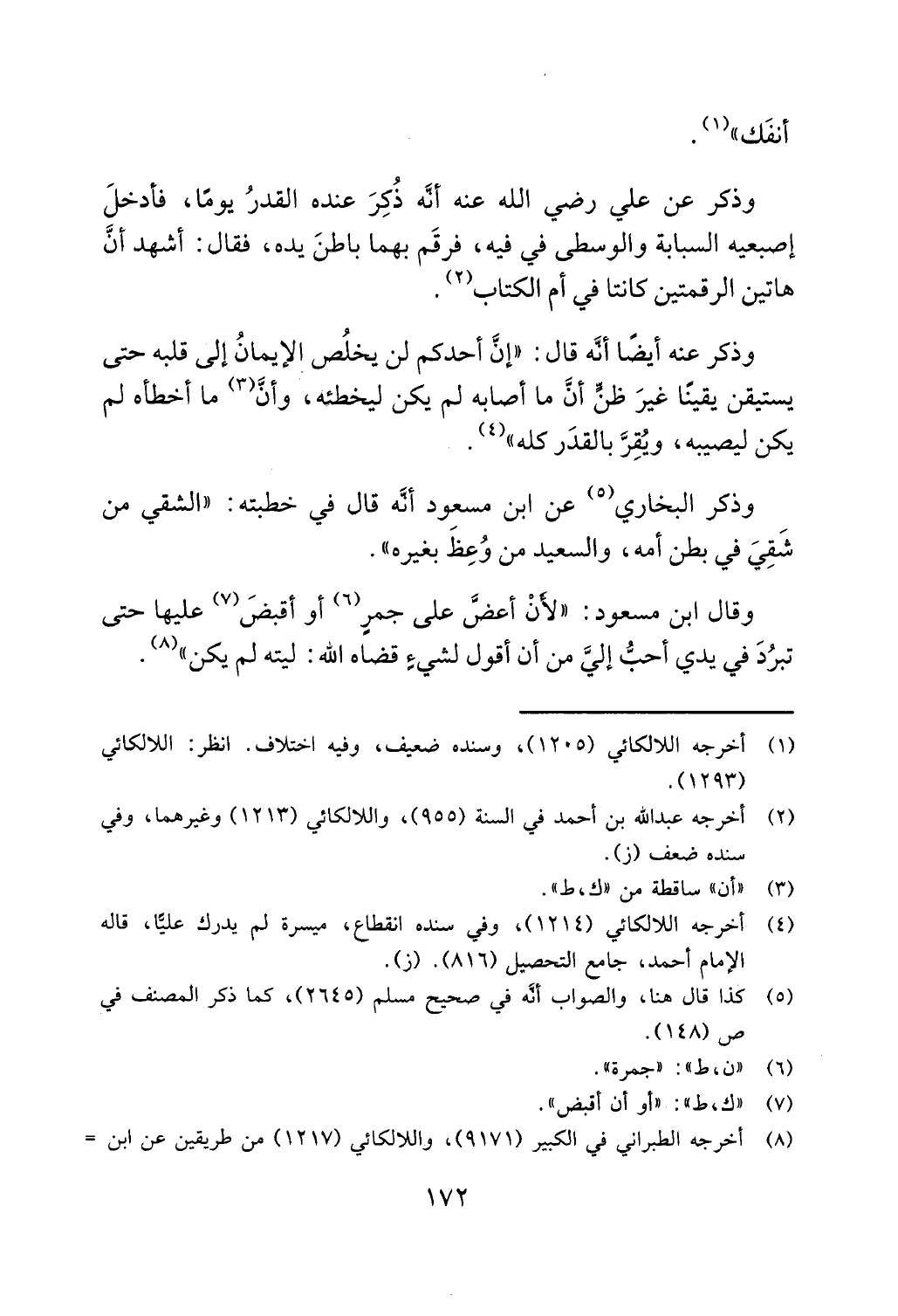 يكن ليصيبه، ويقر بالقدر كله " (4).