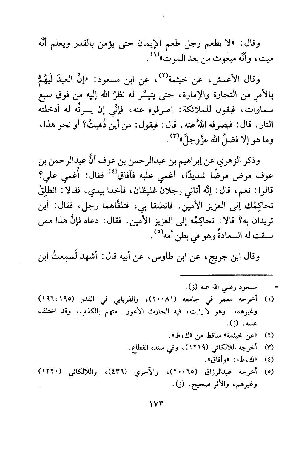 أخرجه عبدالرزاق (5 6 0 0 2)، والاجري (436)، واللالكائي (0 2 2 1)