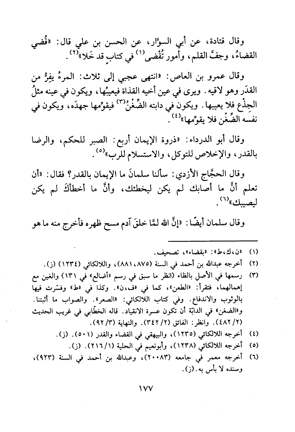 وقال الحجاج الازدي: سألنا سلمان ما الايمان بالقدر؟ فقال: "أن
