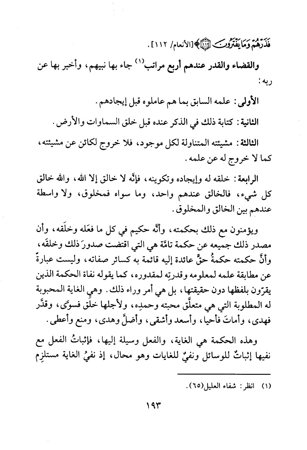 والقضاء و] لقدر عندهم أرببع مر] تب
