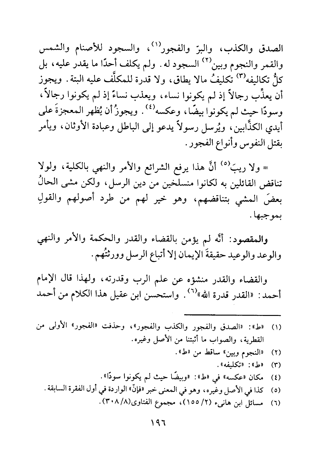 حمد: "القدر قدرة الله " (6). واستحسن ابن عقيل هذا الكلام من أحمد