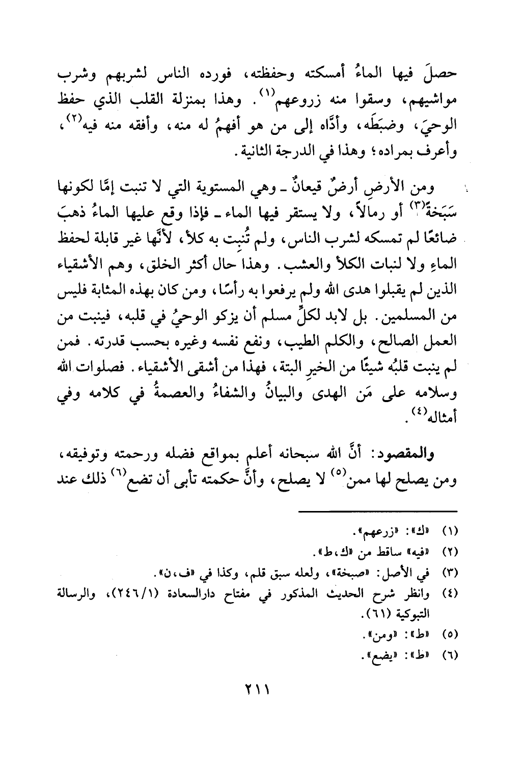 (4) وانظر شرح الحديث المذكوو قي مفتاح داوالسعادة (246/ 1)، والرسالة