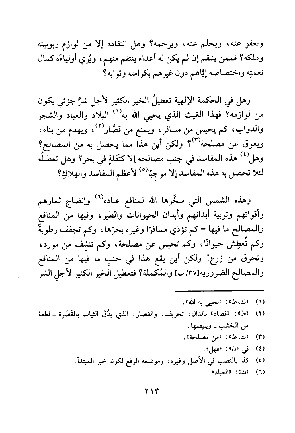 وهل (4) هذه المفاسد في جنب مصالحه إلا كتفلة في بحر؟ وهل تعطيله