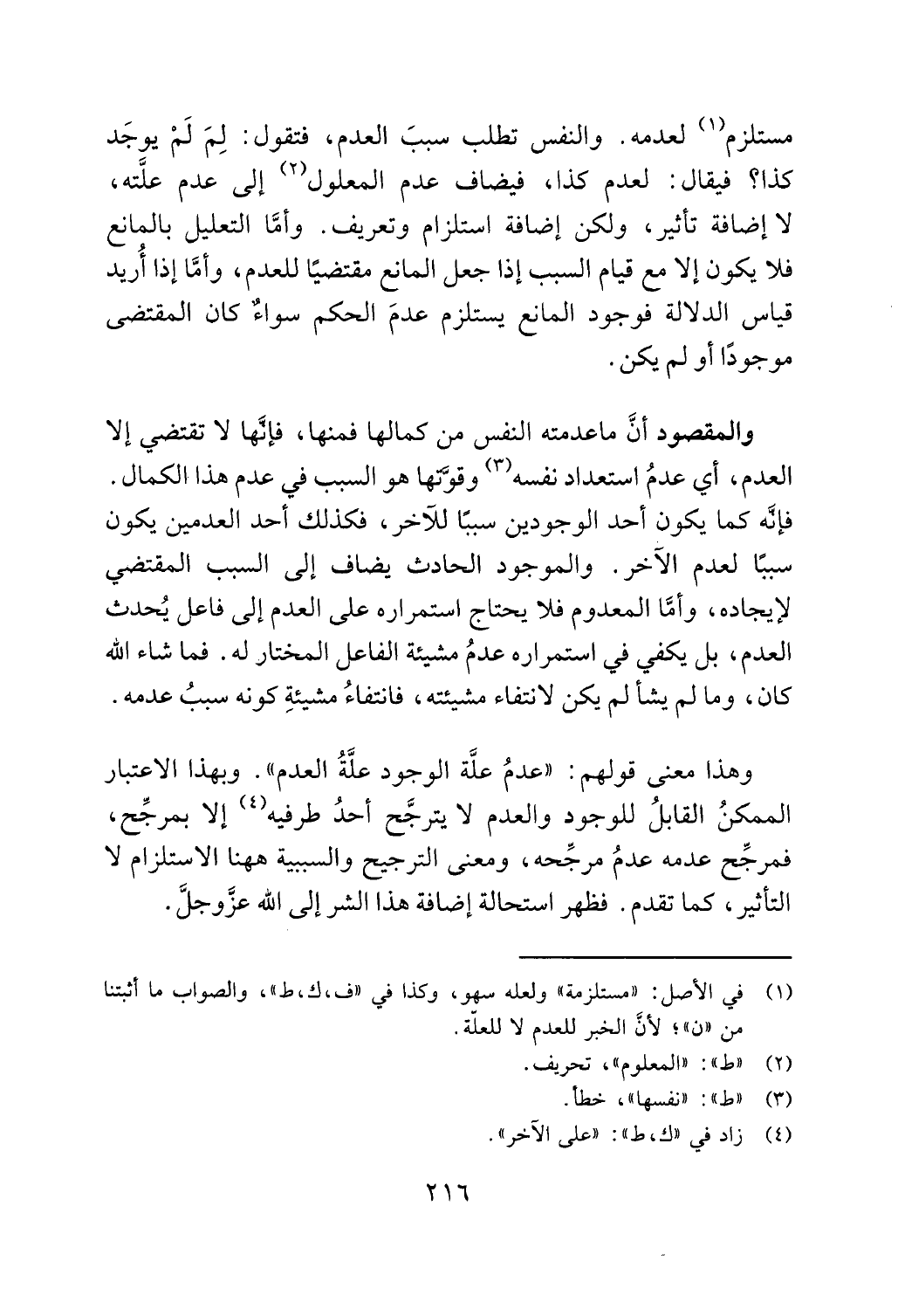 وهذا معنى قولهم: "عدم علة الوجود علة العدم ". وبهذا الاعتبار