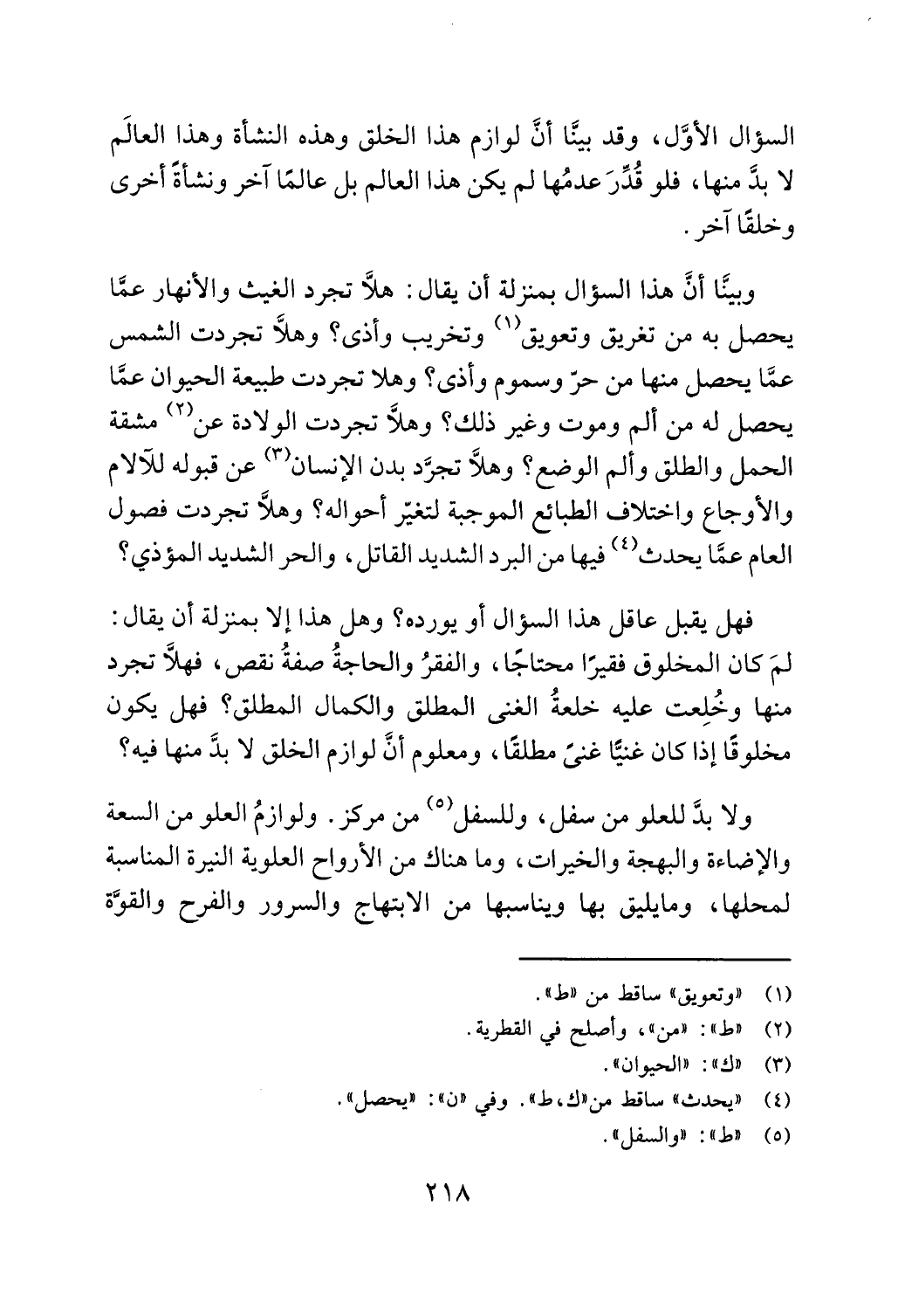 السؤال الاول، وقد بينا أن لوازم هذا الخلق وهذه النشأة وهذا العالم