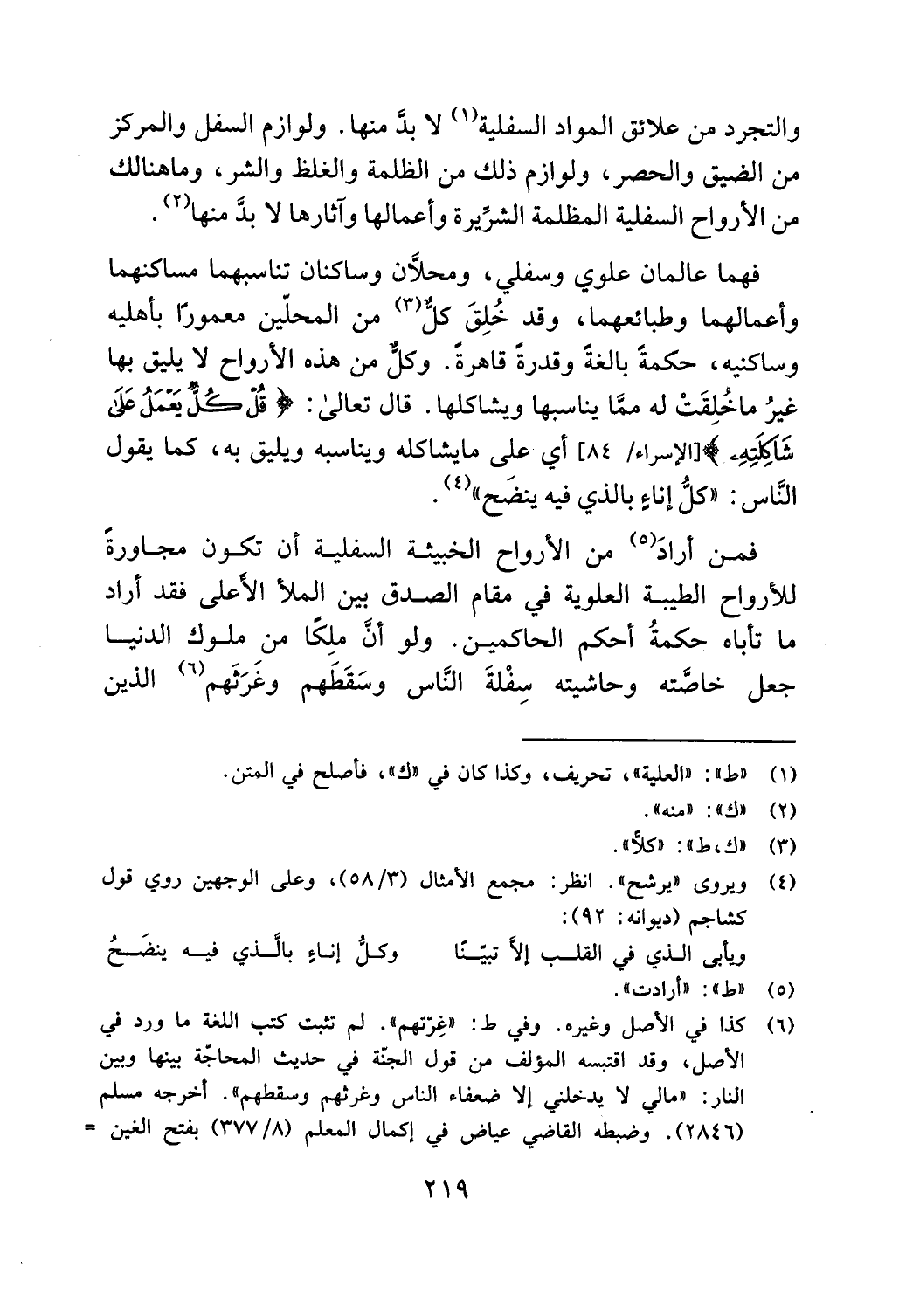 والتجرد من علائق المواد السفلية (1) لا بد منها. ولوازم السفل والمركز