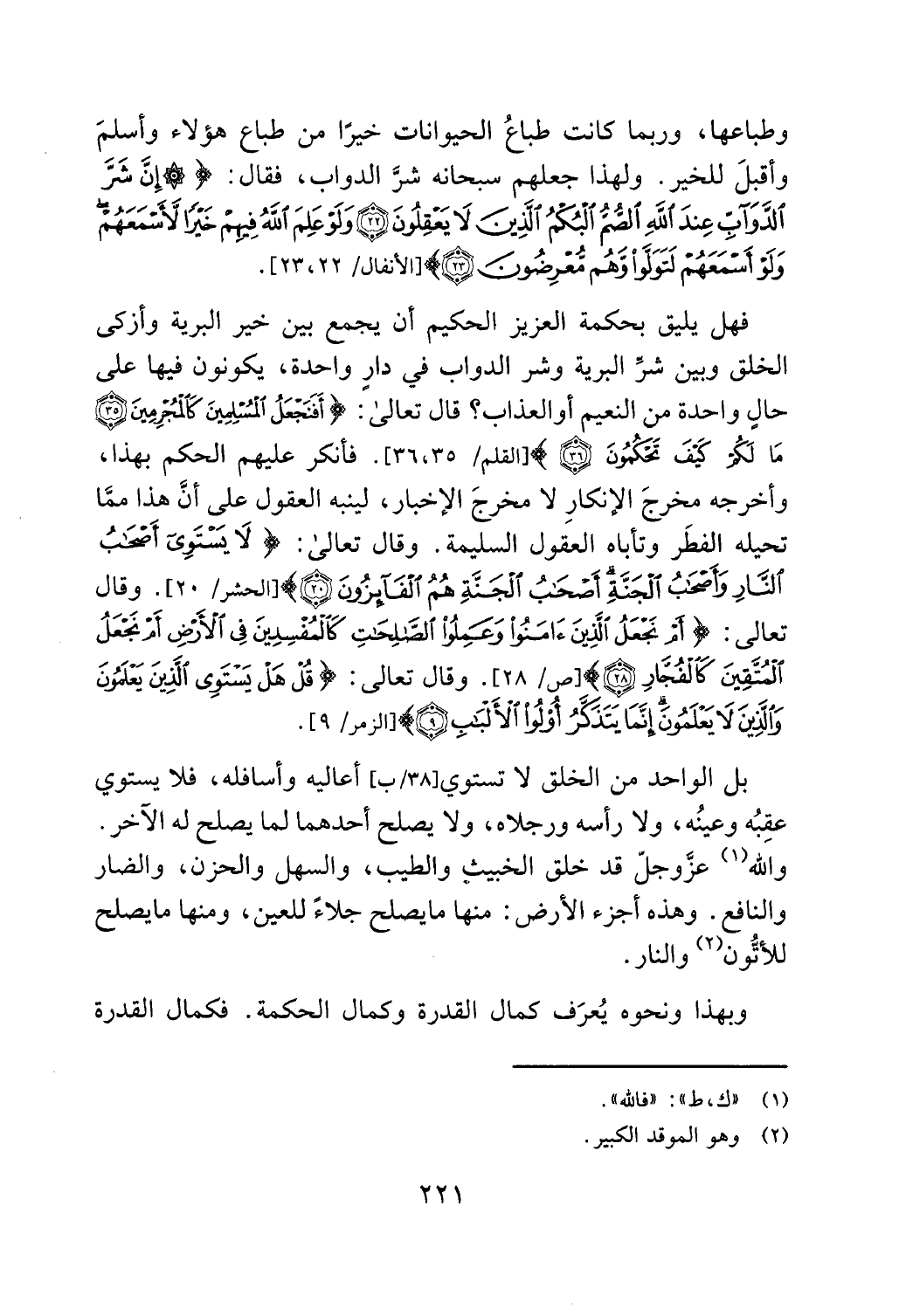 وبهذا ونحوه يعرف كمال القدرة وكمال الحكمة. فكمال القدرة