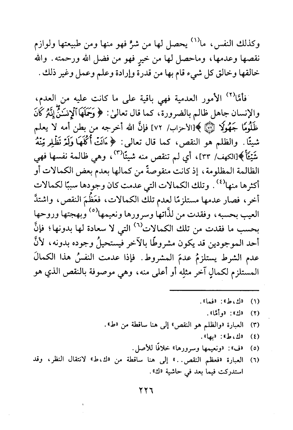 وكذلك النفس، ما (1) يحصل لها من شو فهو منها ومن طبيعتها ولوازم