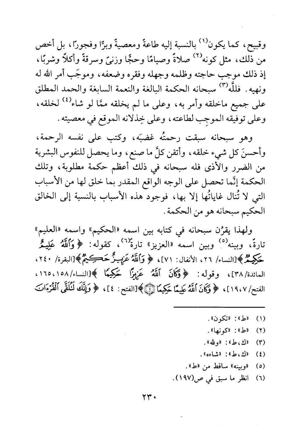 ولهذا يقرن سبحانه في كتابه بين اسمه "الحكيم" واسمه "العليم"
