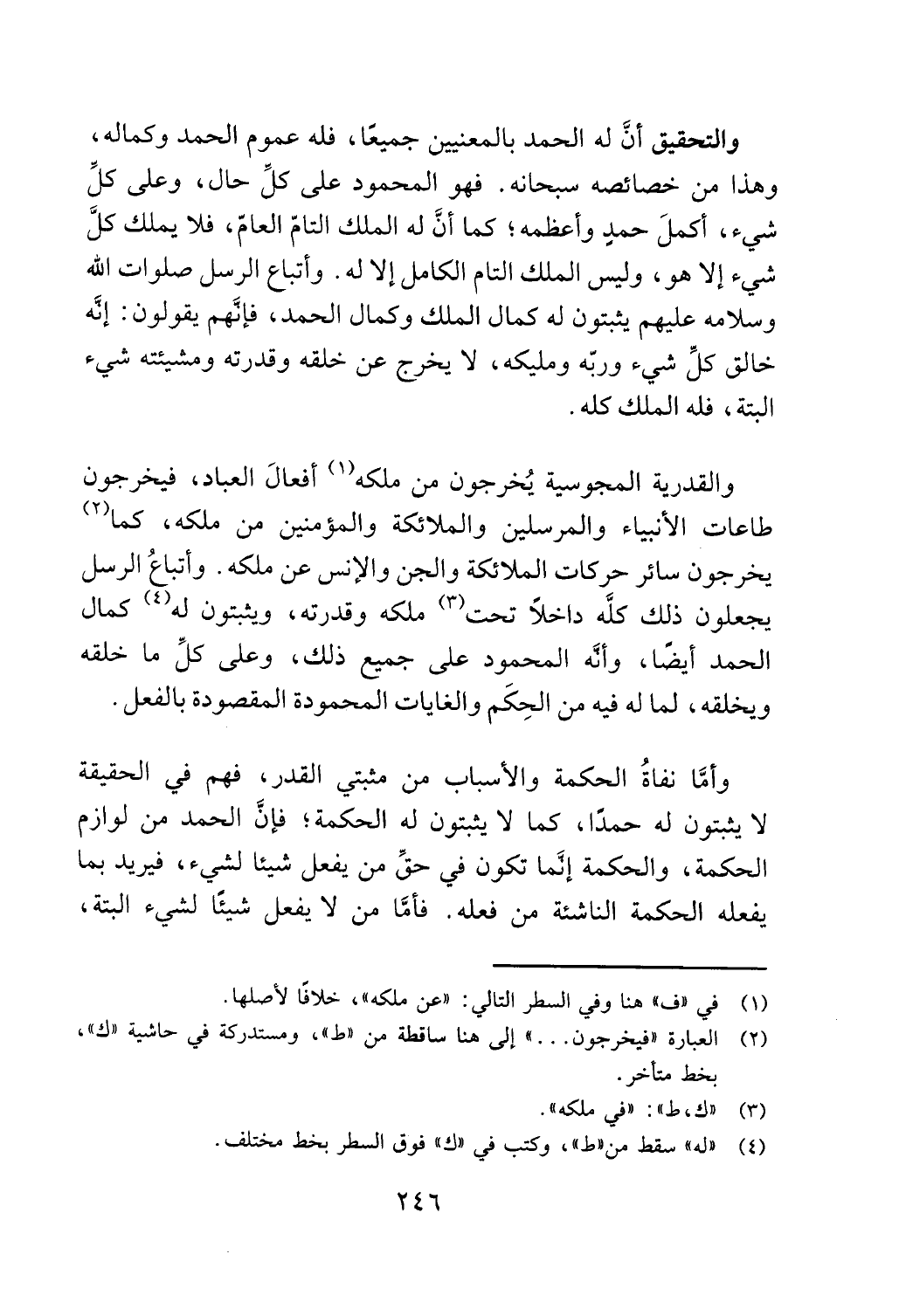 يجعلون ذلك كله داخلا تحت (3) ملكه وقدرته، ويثبتون له (4) كمال