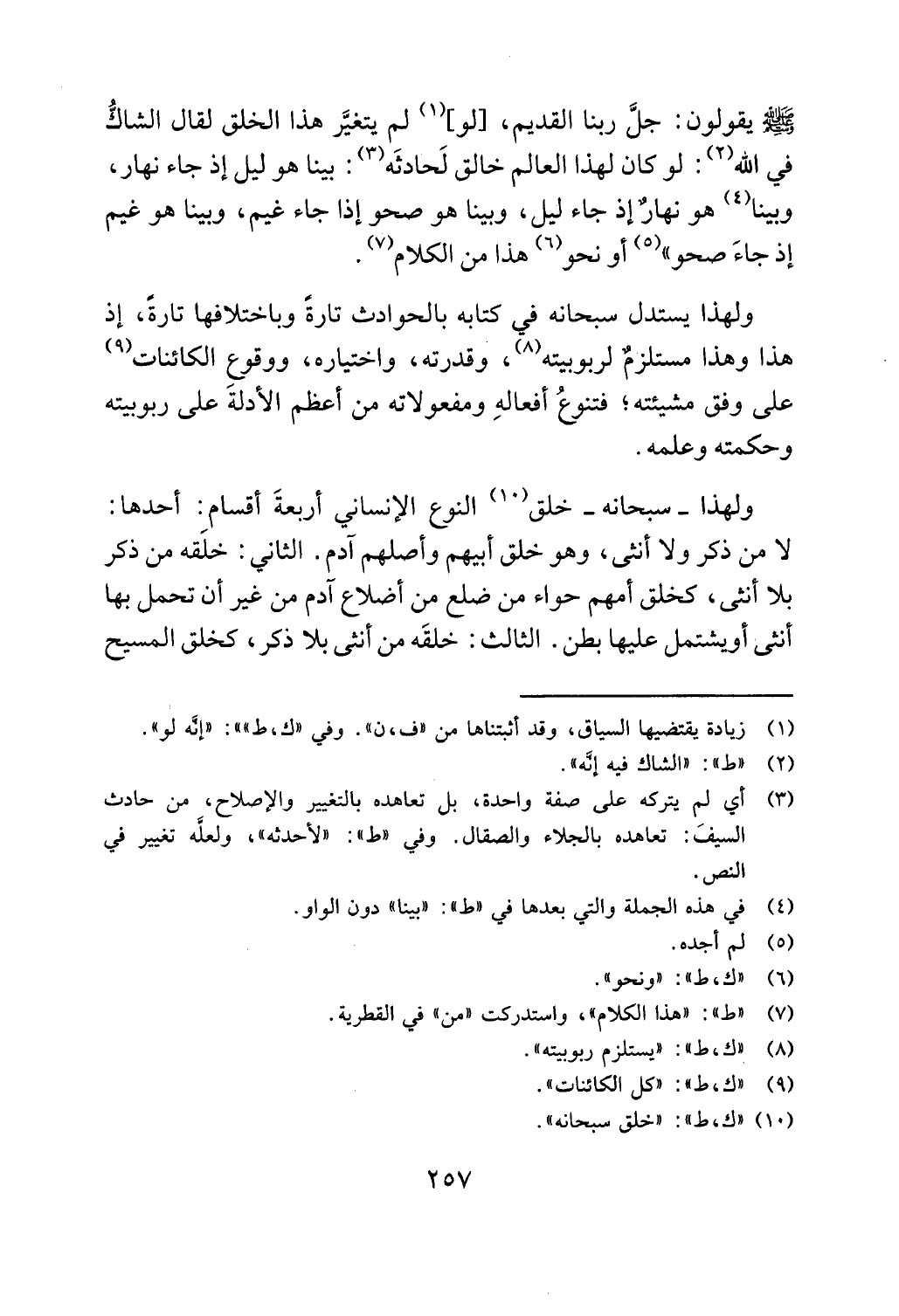 هذا وهذا مستلزم لربوبيته (8)، وقدرته، واختياره، ووقوع الكائنات (9)