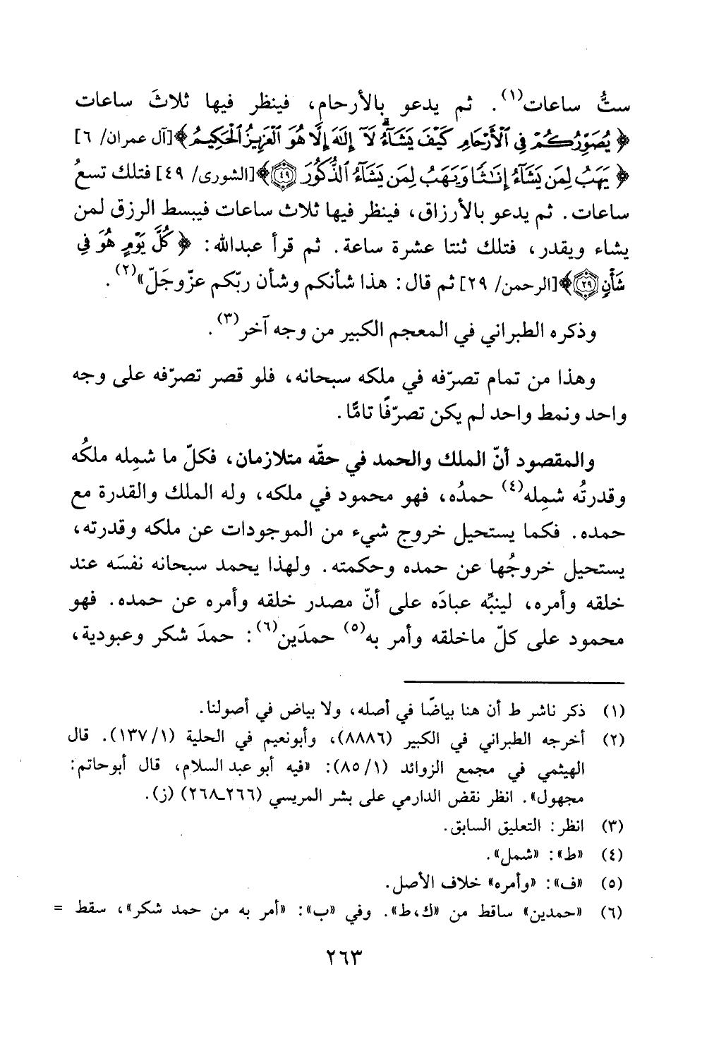 وهذا من تمام تصزفه في ملكه سبحانه، فلو قصر تصرفه على وجه
