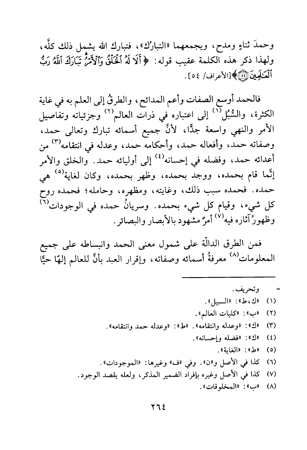 كل شيء، وقيام كل شيء بحمده. وسريان حمده في الوجودات (6)