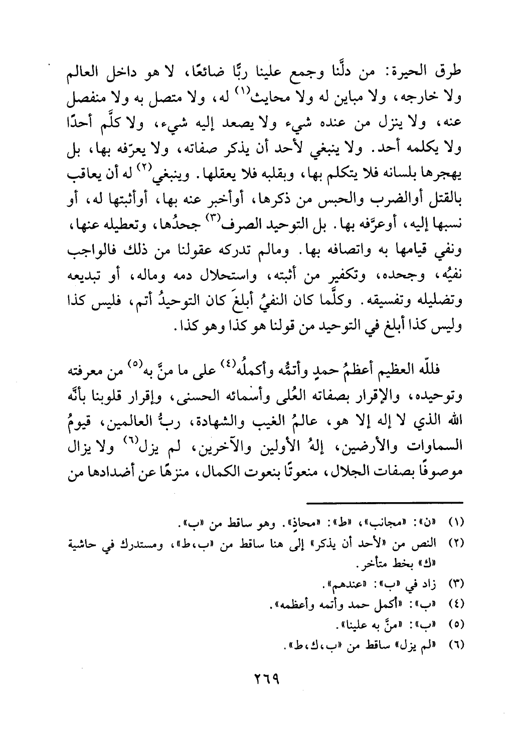 ولا خارجه، ولا مباين له ولا محايث (1) له، ولا متصل به ولا منفصل