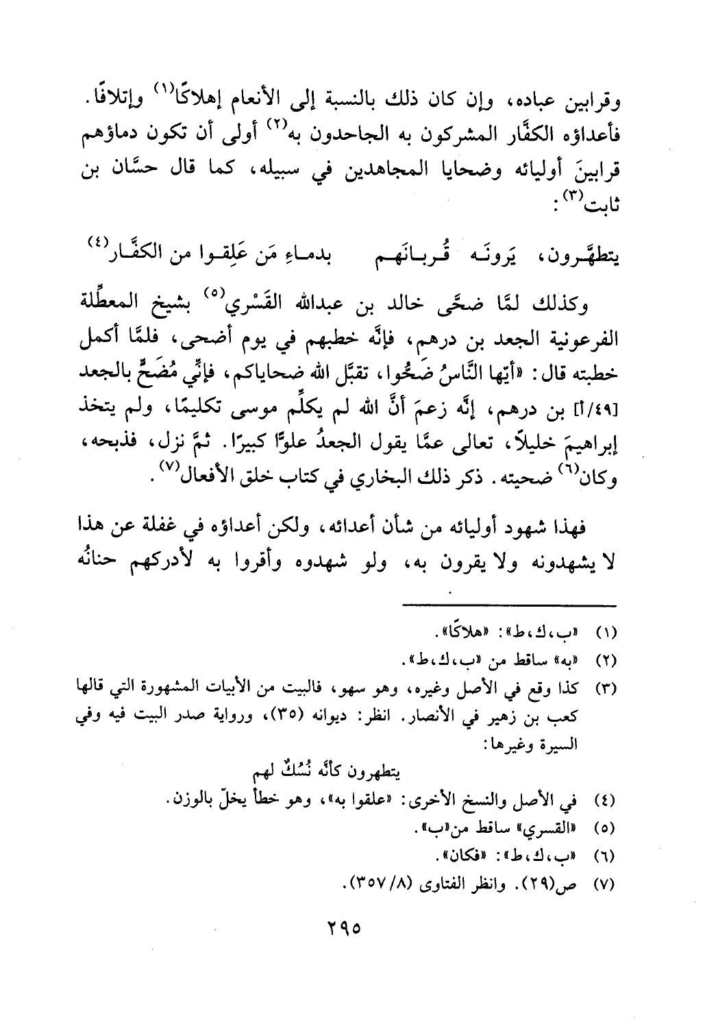 وكذلك لما ضحى خالد بن عبدالله القسري () بشيخ المعطلة