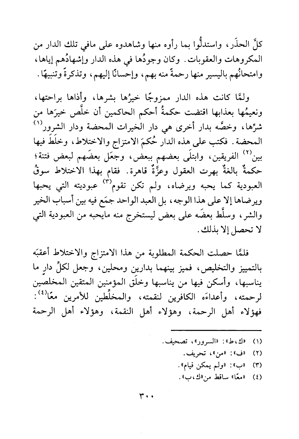 شرها، وخصه بدار أخرى هي دار الخيرات المحضة ودار الشرور (1)