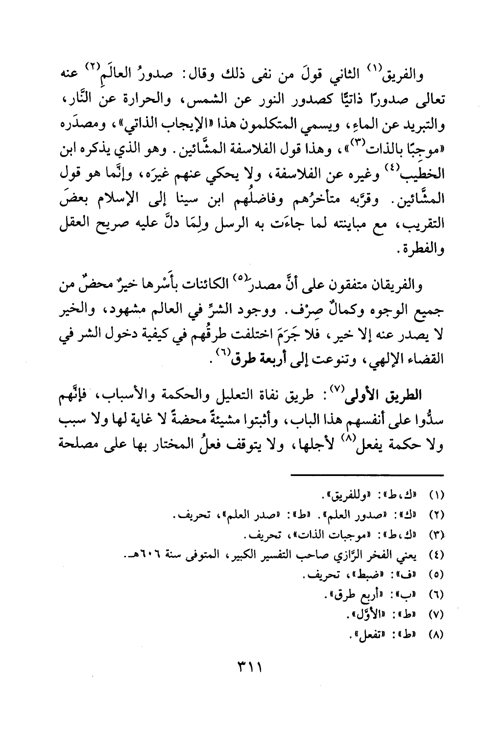 (4) يععي الفخر الرازي صاحب التفسير الكبير، المتوفى سنة 606 هـ.